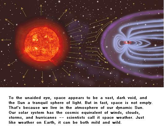 "பரிதியின் தீ வீச்சுகள் (Solar Flares) விண்வெளிப் புயலாய் எப்போதாவது ஒருமுறைப் பூமியைத் தாக்கினால் நெடுங்காலம், துணைக் கோள்களின் தொலைத் தொடர்பு சமிக்கைகள் யாவும் தடைப்படும் ! பூமியில் மின்சக்திப் பரிமாற்றம் நிறுத்தமாகி நகரங்களில் இருட்டடிப்பு உண்டாகி மக்களுக்குப் பேரிடர்கள் நேர்ந்திடும்."